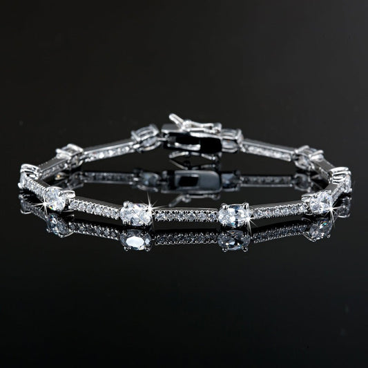 925 Sterling Silver Heavy Plated Tennis Bracelet Featuring 50 Crystals by Swarovski