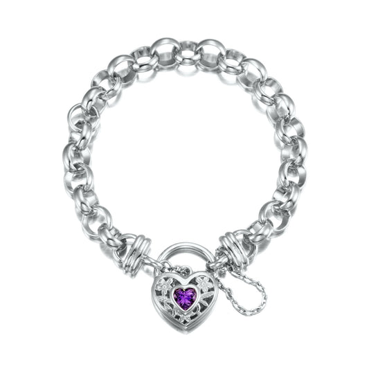 925 Sterling Silver Plated 10mm Belcher Chain Bracelet with a Purple Filigree Locket - USA Made